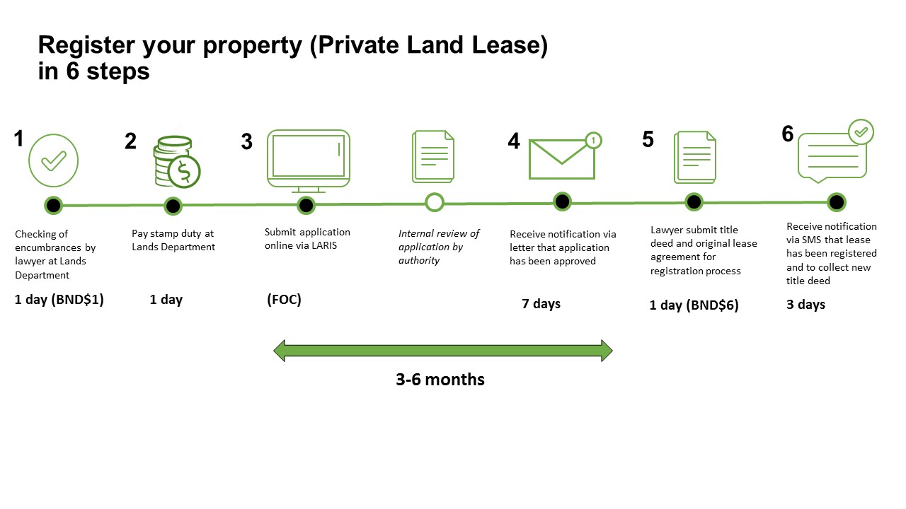 Jabatan Tanah kemudian akan memproses permohonan Pajakan Tanah Persendirian awda untuk mendapatkan kebenaran dari Pihak Berkuasa Atasan, yang akan mengambil masa kira-kira 3 - 6 bulan.